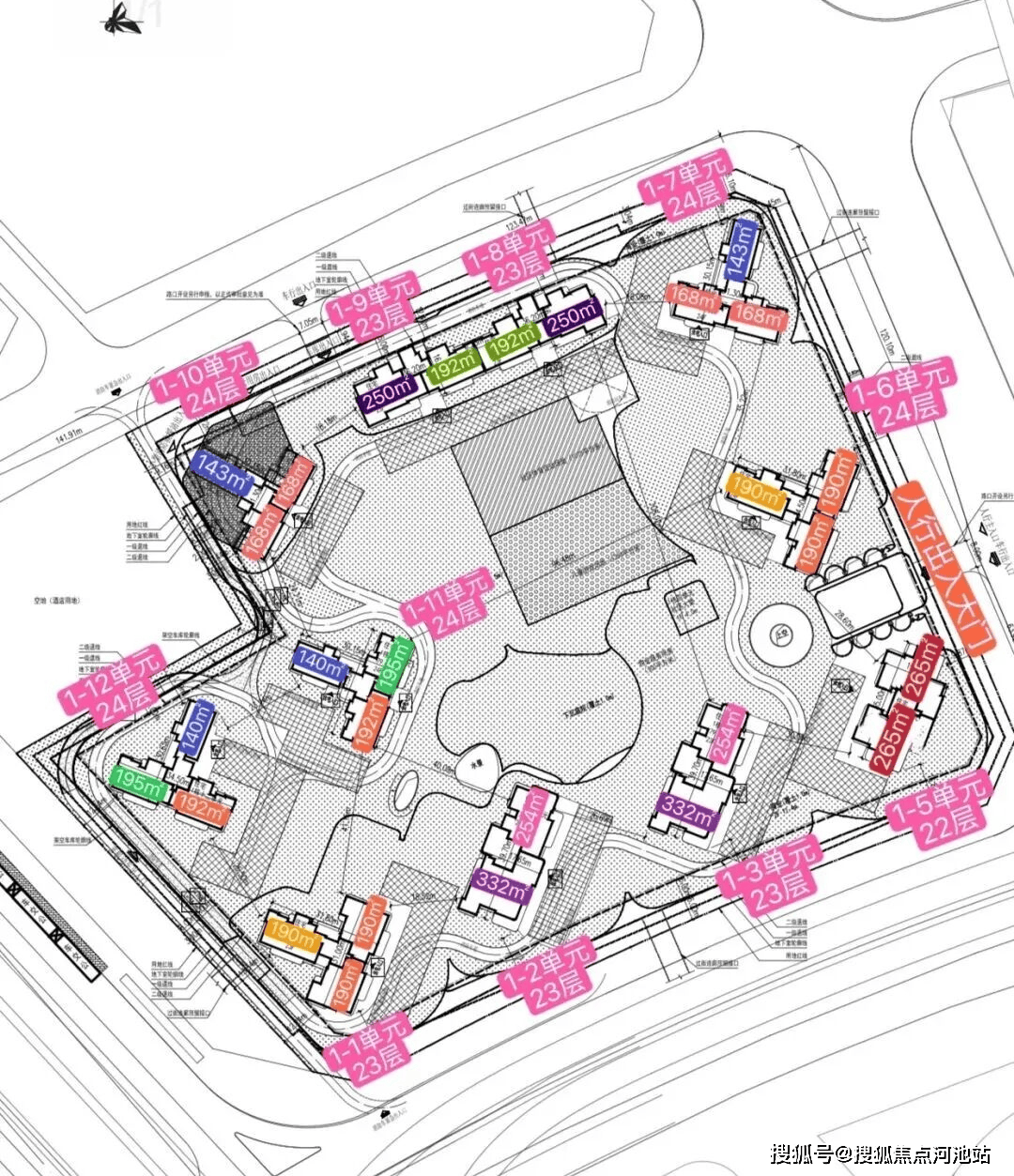 层高22层~24层,总楼高最高限制在80米左右。项目规定容积率3.41但是好像最终建面容积率在4.12了。