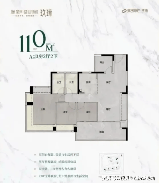 110㎡三房两卫户型则面向品质刚需家庭,总价约384万,采用南北通透设计,客餐厅相连形成开阔的活动空间,采光与通风效果极佳,让室内时刻保持明亮通透。户型布局合理,动静分区明确,休息区与活动区互不干扰,既能满足家人日常互动,又能保障个人隐私,居住舒适度大幅提升。