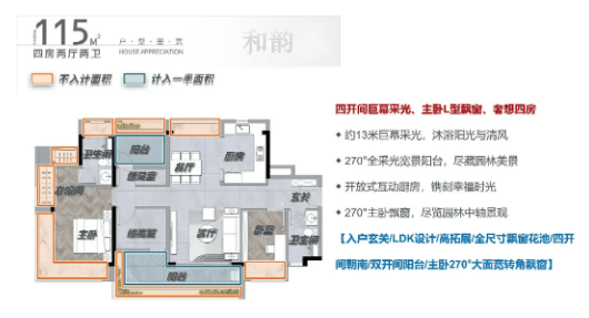 115㎡户型:改善入门,四房设计,多房朝南,厅出大阳台,空间感满满,是下班放空、休闲放松的好地方;同时采用南北对流设计,采光通风无忧,800mm L型飘窗额外拓宽功能空间,收纳力拉满;规划灵活多功能空间,可自由组合,满足收纳达人的整理需求,适合四口之家居住,兼顾实用性与舒适度。