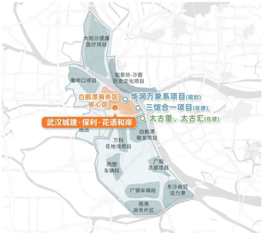 拿地时间:2023年,武汉城建在广州荔湾区白鹅潭CBD核心区以公开摇号的方式拿下该地块,随后与保利发展联手开发,打造片区标杆性低密住宅项目,依托两大房企的实力,保障项目建设品质与交付保障。