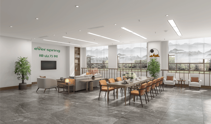 致力于打造邻里式全龄长者颐养社区,在细节之处尽显关怀。全屋无高差、全屋导圆角、全屋连续支撑界面的设计,充分考虑了长者的行动安全与便利。社区内功能空间丰富多样,设有阅读视听区,院线级影视放映厅搭配芝华仕沙发,让长者在家就能享受舒适的观影体验;棋牌运动区,为喜欢棋牌活动的长者提供了切磋交流的场所;书画音律区,满足长者对艺术文化的追求;舞蹈瑜伽区,助力长者保持健康活力;茶饮水吧和休闲会客区,营造出温馨的社交氛围;阳光私宴区,则为长者举办家庭聚会等提供了理想空间。此外,养老中心近邻金隅公园、郊野生态公园、滨水森林公园,让长者们能够亲近自然,享受清新的空气和优美的景色。
