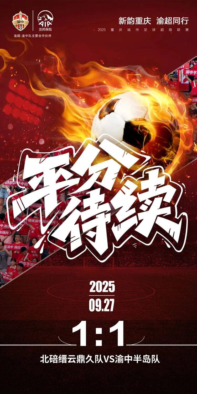 这场比赛,早已超越了简单的胜负。它是一场由足球引发的全城狂欢,是北碚与渝中之间一次充满火药味却又恪守底线的对话。看台上的山呼海啸,与场内的血肉拼搏,共同谱写了这夜最动人的乐章。