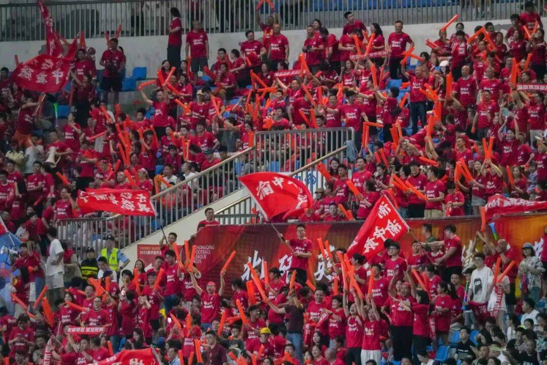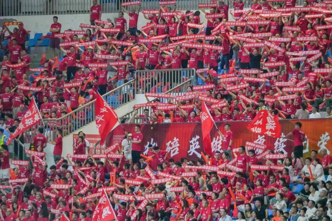 然而,那片“渝中红”并未被淹没。在四大球迷协会的组织下,这两千余人仿佛一个紧密的军团。他们身着统一的助威衫,挥舞着条幅,在队长指挥下,用歌声和口号一次次压过主场的声浪。